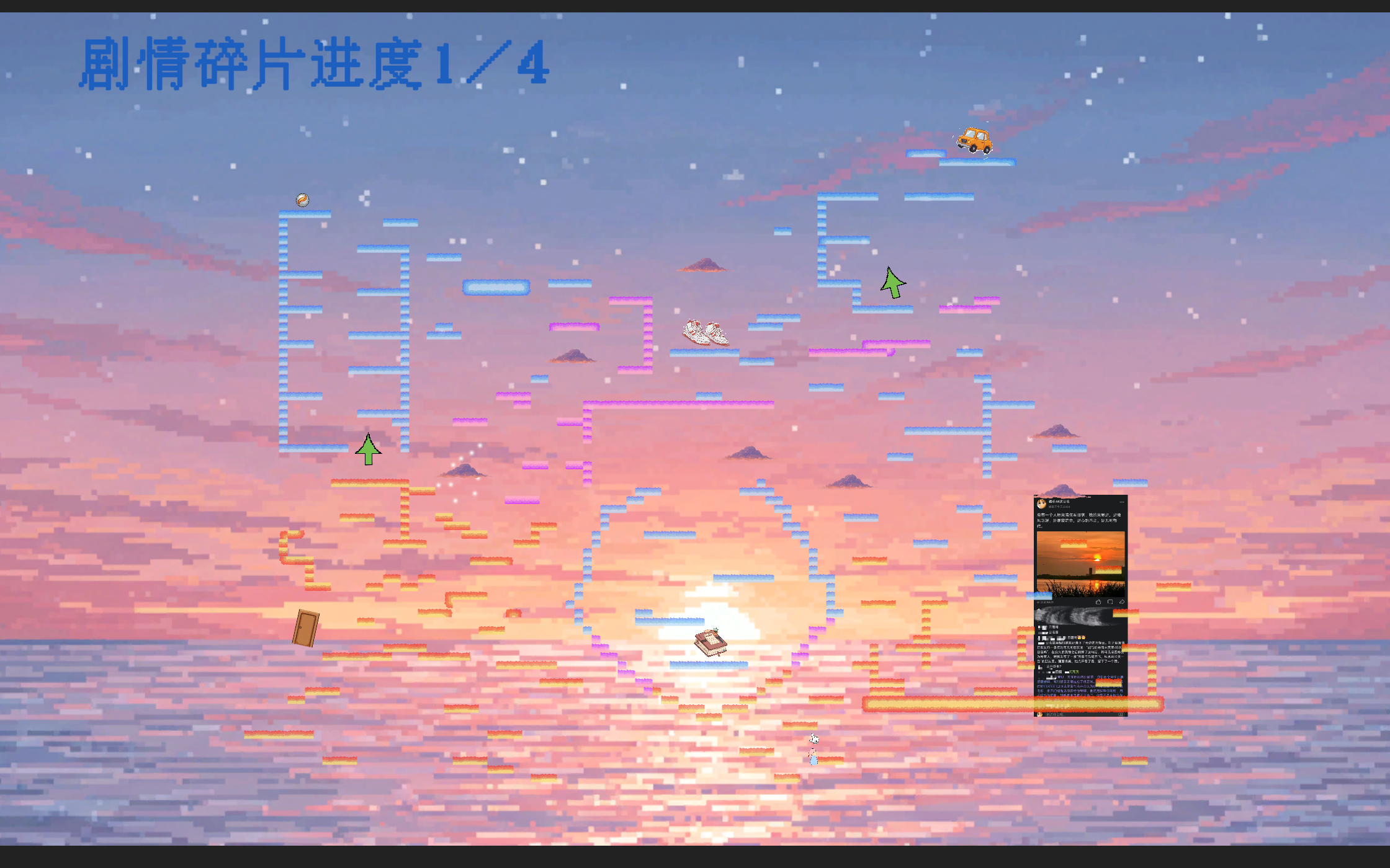 坠入梦境Falling Dream 当梦境与现实交织,一段关于记忆与真相的旅程悄然展开。《坠入梦境》带你穿越四个独特的关卡,每一处都藏着被时光掩埋的故事。唯有触发所有隐秘的剧情线索,才能拼凑出完整的真相。 第一关,你不小心打碎了妈妈的花瓶,碎片散落在家中的每个角落,每一片都承载着家庭成员的回忆;第二关,你与父亲并肩坐在夕阳下,余晖中隐藏着他未曾诉说的过往;第三关,你踏入一片神秘的森林,未知的秘密在树影间若隐若现;第四关,一条蜿蜒的路隐喻着人生的轨迹,带你直面内心最深处的答案。 在跳跃与探索中,感受亲情的温度与人生的重量,坠入梦境的深处,揭开那层被遗忘的面纱。 When dreams and reality collide, a journey of memory and truth begins. FallingDream takes you through four unique levels, each hiding stories buried by time. Only by unlocking every hidden clue can you piece together the full picture. In Level 1, you accidentally shatter your mother’s vase, scattering fragments that hold your family’s memories. Level 2 finds you sitting with your father under the sunset, where the fading light reveals his untold past. Level 3 leads you into a mysterious forest, its shadows concealing secrets waiting to be uncovered. Finally, Level 4 unfolds as a winding path, a metaphor for life’s journey, guiding you to confront the answers within. Jump, explore, and feel the warmth of family and the weight of life as you fall deeper into the dream, uncovering the truth that lies beneath.
